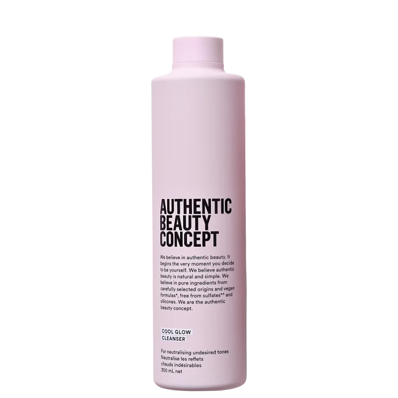 O Shampoo Authentic Beauty Concept Cool Glow Cleanser traz fórmula com um toque violeta, com o benefício de neutralização dos tons loiros e grisalhos. Assim neutraliza tons amarelados indesejados, além de hidratar e promover um brilho renovado e uma aparência mais macia e suave aos fios.