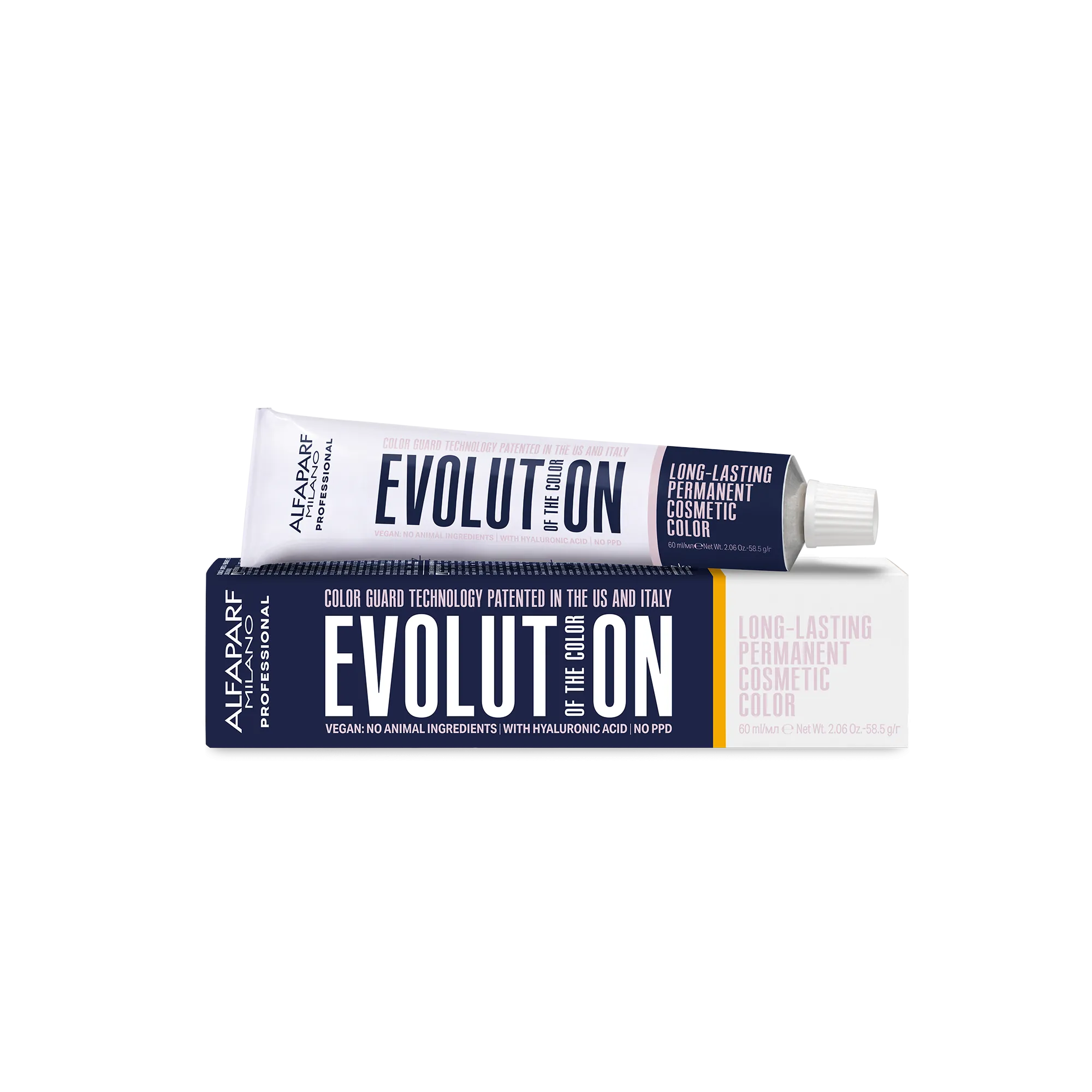 Evolution of the color é a coloração cosmética permanente de longa duração que garante a máxima perfeição da cor, no total respeito do cabelo. Patented color Guard Technology para a proteção da intensidade e duração da cor e uma combinação inovadora de ingredientes ativos para a proteção da cor contra danos causados pela luz azul, pela poluição e pela luz UV.