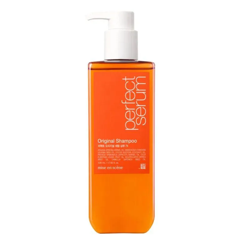 O Shampoo Mise en Scene Perfect Serum limpa delicadamente enquanto repara e nutre profundamente os fios danificados. Formulado com o exclusivo Golden Morocco Argan Oil e um complexo de 7 oleos vegetais, oferece uma experiencia de cuidado capilar completa desde a lavagem. Ideal para cabelos secos, com quimica ou danificados por calor, sua formula rica proporciona hidratacao, brilho e maciez sem pesar, deixando o couro cabeludo limpo e os fios alinhados e protegidos.