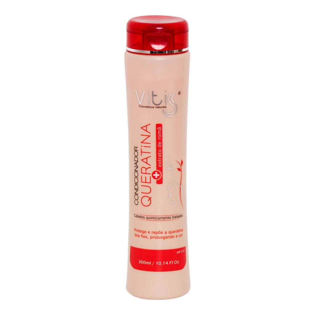 O Condicionador Vitiss Queratina + Extrato de Romã restaura a estrutura natural dos cabelos. Hidrata e repõe a queratina perdida por processos químicos. Regenera e protege os fios. A ação revitalizante do extrato de romã age na fixação e proteção da cor, evita o desbotamento e proporciona cores vibrantes e mais duradouras.